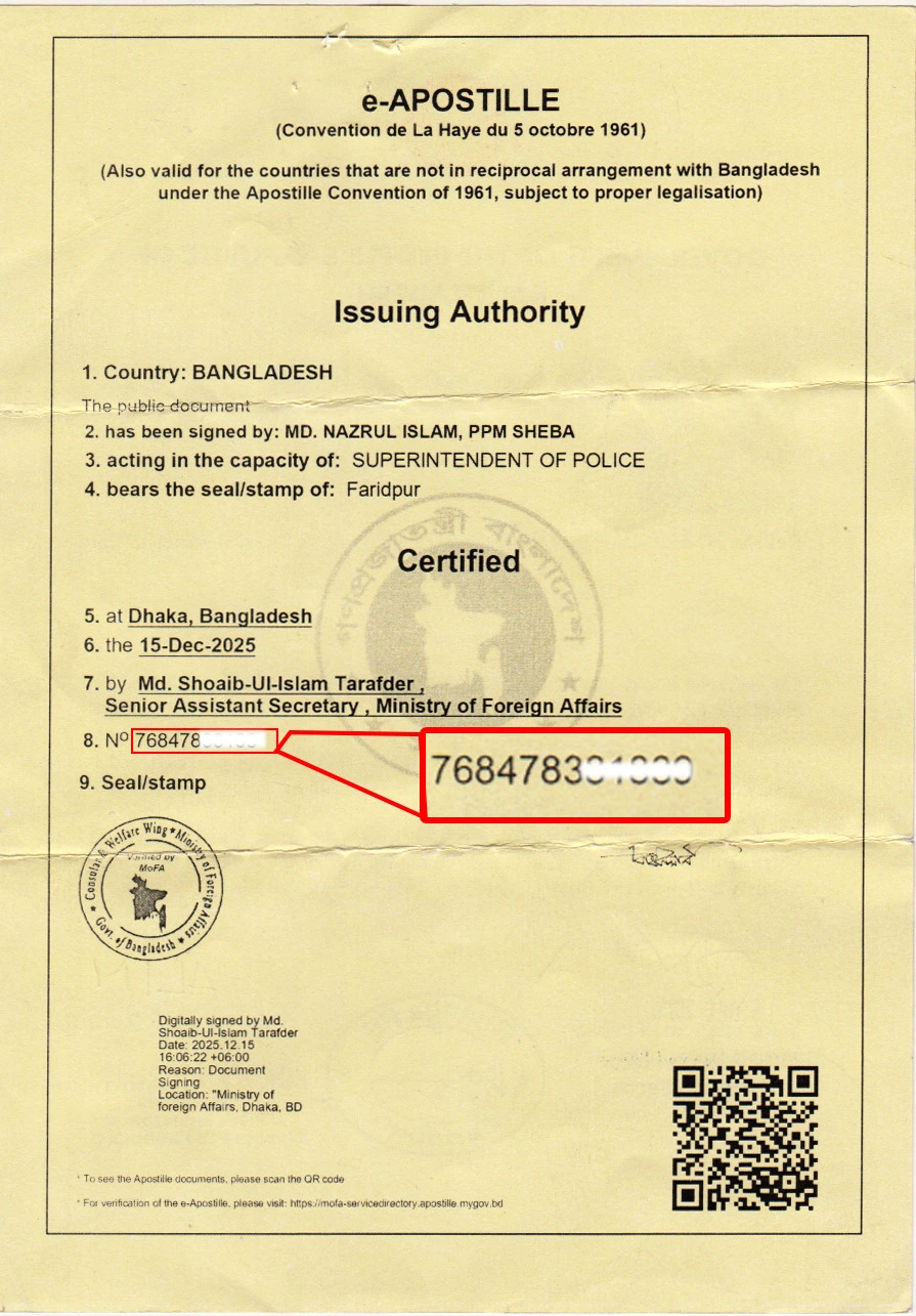 আপনি যদি পুলিশ ক্লিয়ারেন্স হাতে পেয়ে থাকেন তাহলে আপনার পুলিশ ক্লিয়ারেন্সর পিছনের সার্টিফিকেট নাম্বার টা লিখে Search বাটনে ক্লিক করুন।